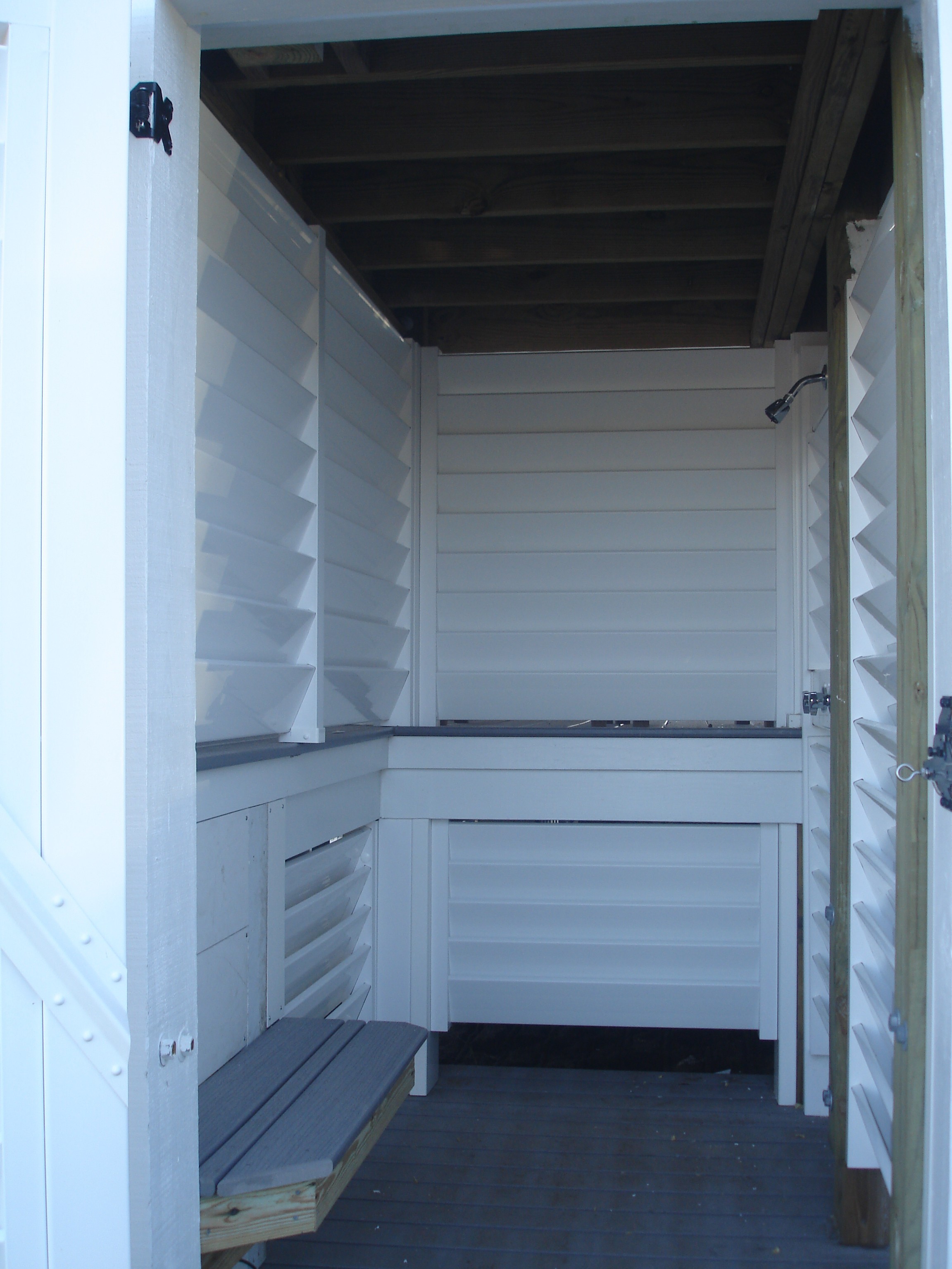 Louvered shower enclosure